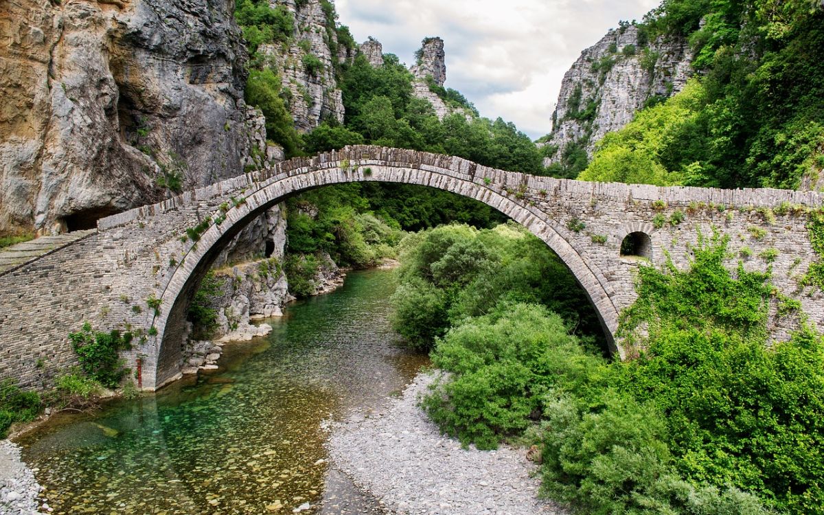 One of the most beautiful Zagorohoria, the Gardens, 39 kilometers from Ioannina, is named after the many gardens and vineyards that exist in the area. It is also called "village of the bridges", as it is framed by magnificent arched Epirus bridges, with the most important triplexed bridge of Plakida or Kalogiarikos, the photographed bridge of Kokoris, the bridge of Kontodemos or Lazaridis, the stone bridge of Mylos, the bridge of Petsonis of Misius.