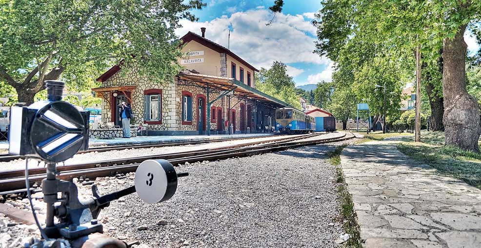The Odontotos -Cogwheel- from the coasts of the Corinthian Gulf follows the Vouraikos Gorge. After a distance of 22,350 meters, on a slope of up to 175o/oo, within 60 minutes, it ends up in the city of Kalavryta. It has been operating for 120 years since 1896..