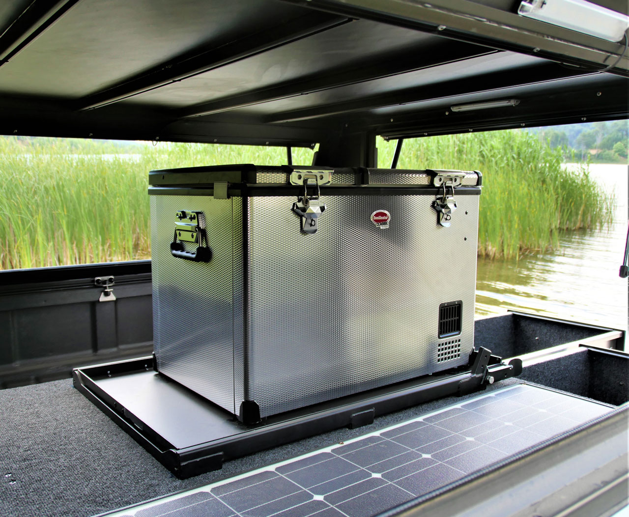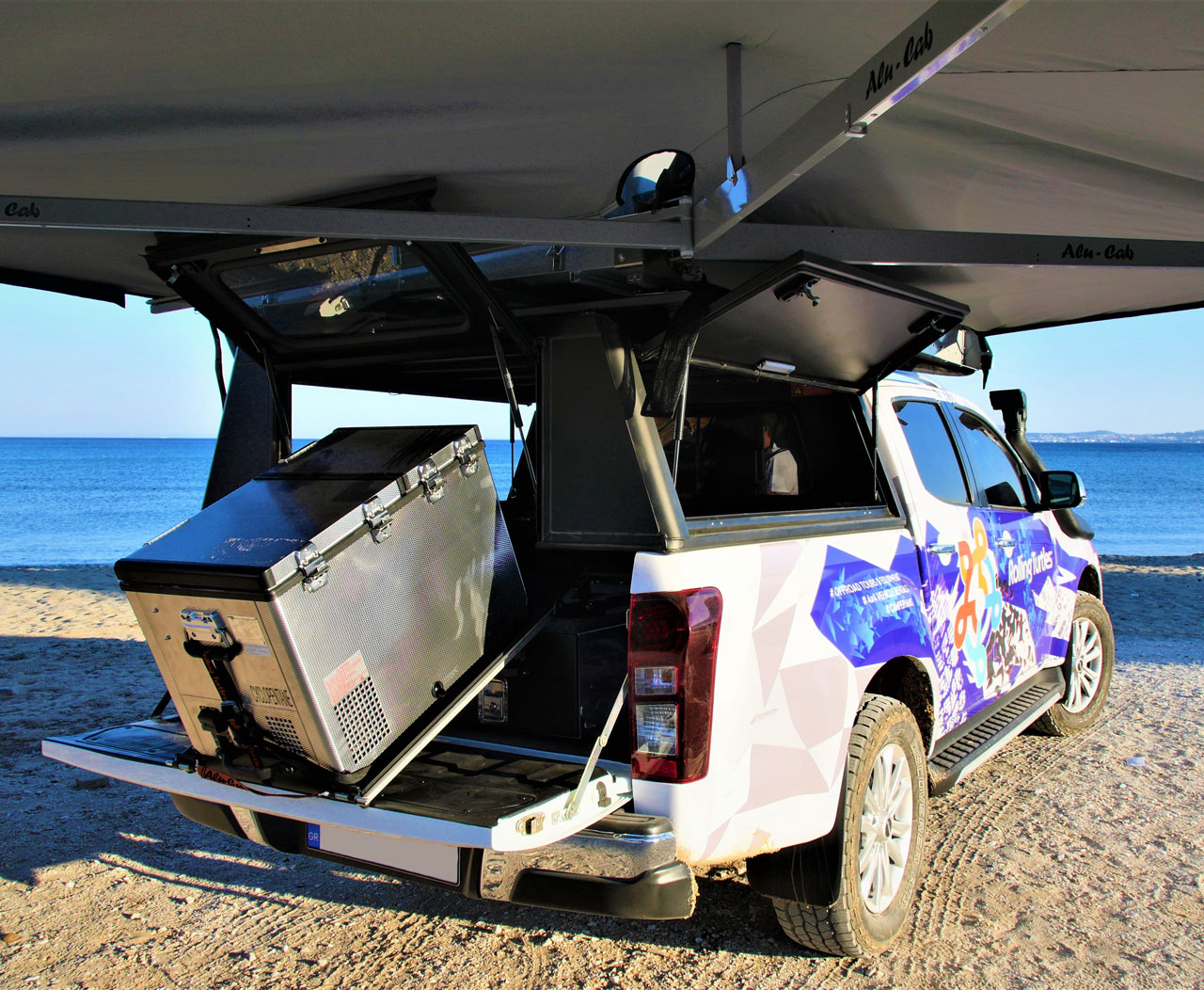 It is equipped with air-condition, fridge & freezer, portable dual gas stove, car radio with AUX,USB & Bluetooth, 220V power outlet and an integrated awning.